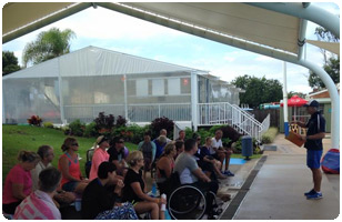 Clinics are divided into three parts – 1) Theory 2) Circuit exercises used for swimmers 3) Pool session.